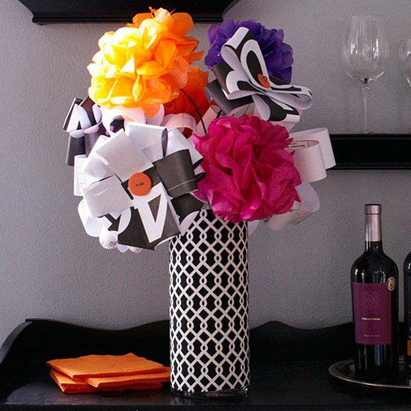 1.Bạn có thể tự tạo cho mình lọ hoa từ giấy dán tường dư sau khi trang trí phòng ngủ. Đây không chỉ là cách bạn thể hiện sự sáng tạo, lạ mắt, mà còn để lại ấn tượng tốt cho mọi người về một cô nàng khéo tay yêu đời và có con mắt nghệ thuật.
