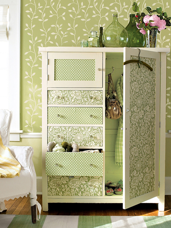 4. Ngoài ra, bạn có thể dùng giấy dán tường làm cho mới tủ đồ nhà bạn, đem tới nhiều cảm xúc tươi vui mỗi cho không gian