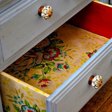 6. Mọi người sẽ bị thu hút khi đáy ngăn kéo của bạn lại được trang trí bằng lớp giấy dán tường. Mỗi lần mở ngăn là một lần thú vị.