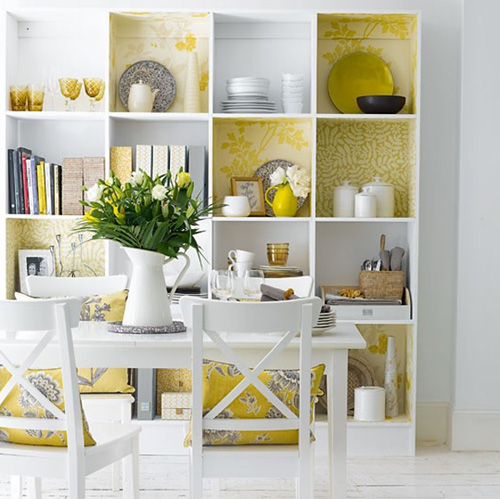 3. Với những mẫu giấy dán tường thừa bạn có thể điểm tô cho chiếc kệ tủ của gia đình trở nên xinh xắn và nổi bật cùng các gam màu tươi mới.