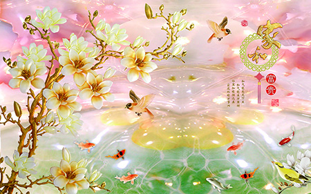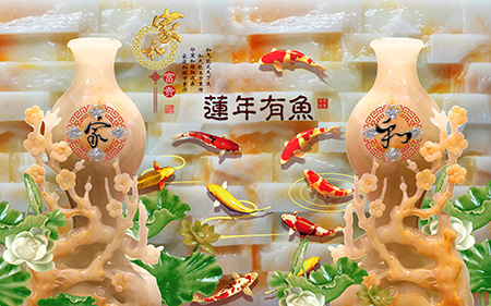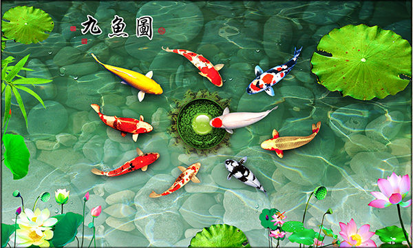 Cụ thể, ví dụ nếu bạn là người tuổi Tý, tuổi Ngọ chọn sử dụng mẫu tranh dán tường 3D giả ngọc kết hợp hình chín con cá chép dưới đây chính là sự lựa chọn tốt nhất.