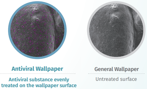 Virus, vi khuẩn trong không khí, nếu bám vào bề mặt giấy dán tường thì sẽ rút ngắn thời gian tự phân hủy, và bị tiêu diệt chỉ trong vòng 2 giờ. Điều này giúp cho virus, vi khuẩn không thể tồn tại lâu trong ngôi nhà mình. An toàn sức khỏe, đặc biệt đối với các đối tượng trẻ em và người cao tuổi có sức đề kháng kém.