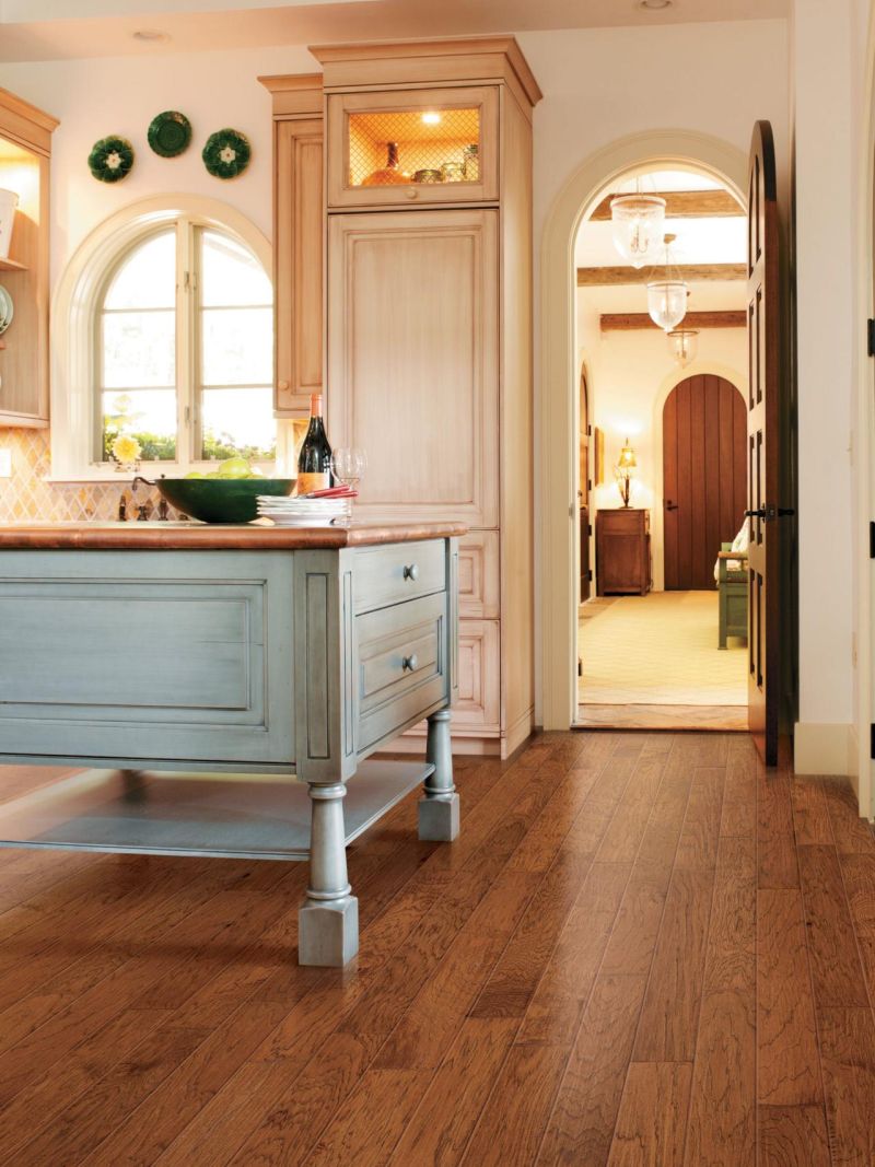 Nếu bạn đang tìm kiếm một lựa chọn sàn gỗ có kết cấu rõ ràng hơn và sang trọng hơn, thì có thể tham khảo sàn gỗ cho phòng bếp này. Sàn gỗ đã sử dụng các chi tiết được lấy cảm hứng từ phong cách rustic và không làm hỏng sự sang trọng của căn bếp.