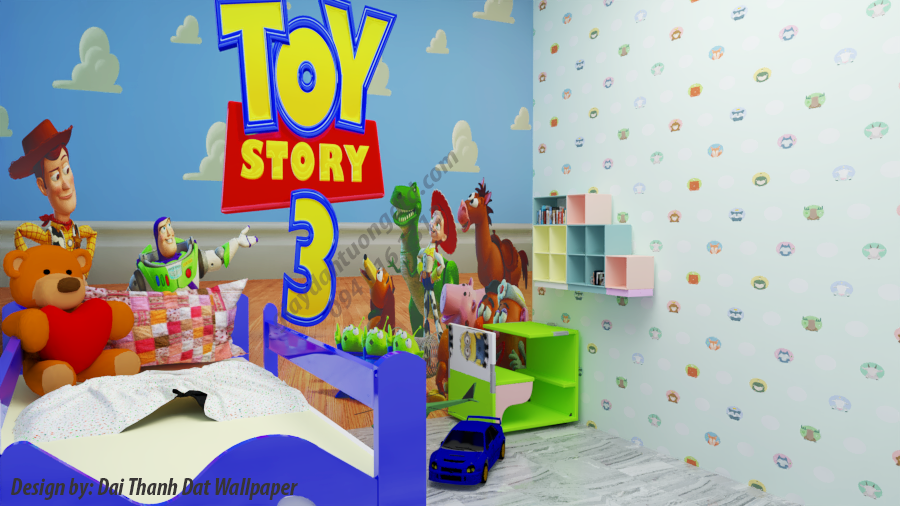 Trang trí phòng bé trai kết hợp giấy dán tường hàn quốc Dream World và tranh 3D